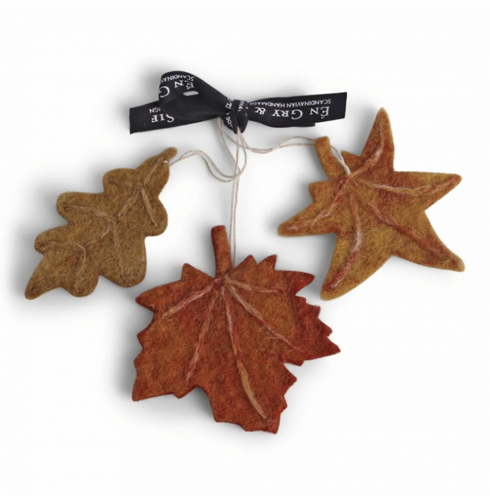 Bring efterårets varme farver ind i hjemmet med dette sæt af 3 håndlavede filtblade fra Gry & Sif. Sættet består af tre forskellige blade i smukke, gyldne nuancer, som giver en naturlig og hyggelig stemning i din indretning. Hvert blad er fremstillet i hånden af dygtige nepalesiske kvinder under fair trade-forhold, hvilket gør hvert enkelt stykke unikt.