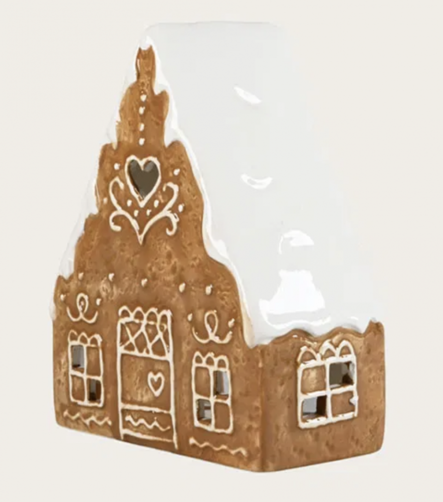 Dette charmerende lyshus i dolomit er udformet som et klassisk honningkagehus med fine hvide detaljer og et smukt “sneklædt” tag. Huset spreder en varm og hyggelig stemning, når et fyrfadslys eller LED-lys lyser op indefra. Perfekt som del af julepynten på en reol, i vindueskarmen eller som midtpunkt på julebordet.