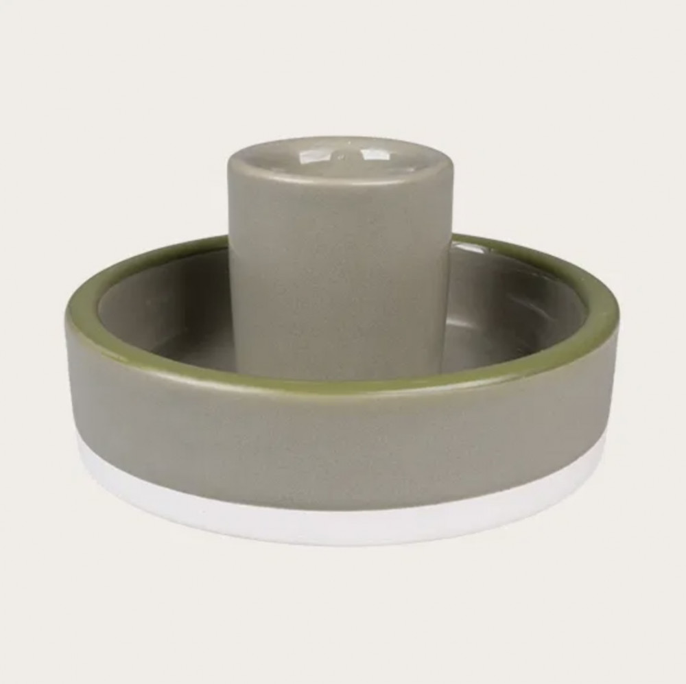 Denne fine lysestage i keramik er et enkelt og dekorativt valg til dig, der elsker rolige farver og små detaljer i indretningen. Med sit rene formsprog og bløde nuancer passer lysestagen smukt ind i både moderne og klassiske hjem.