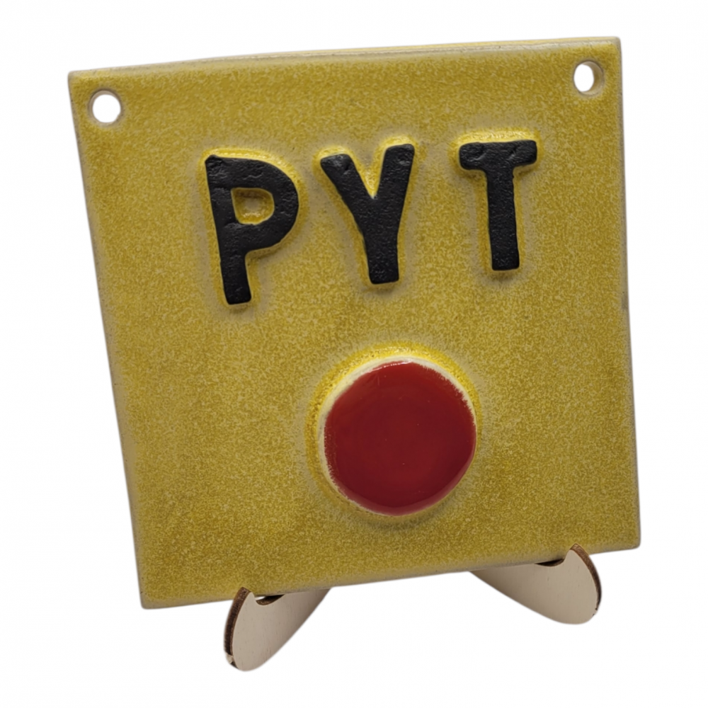 Denne håndlavede keramik pyt-knap er både dekorativ og meningsfuld. Den er skabt med kærlighed til håndværk og et glimt i øjet. Knappen minder dig om, at ikke alt er værd at bruge energi på – nogle gange er det bedst bare at sige “pyt” og komme videre.