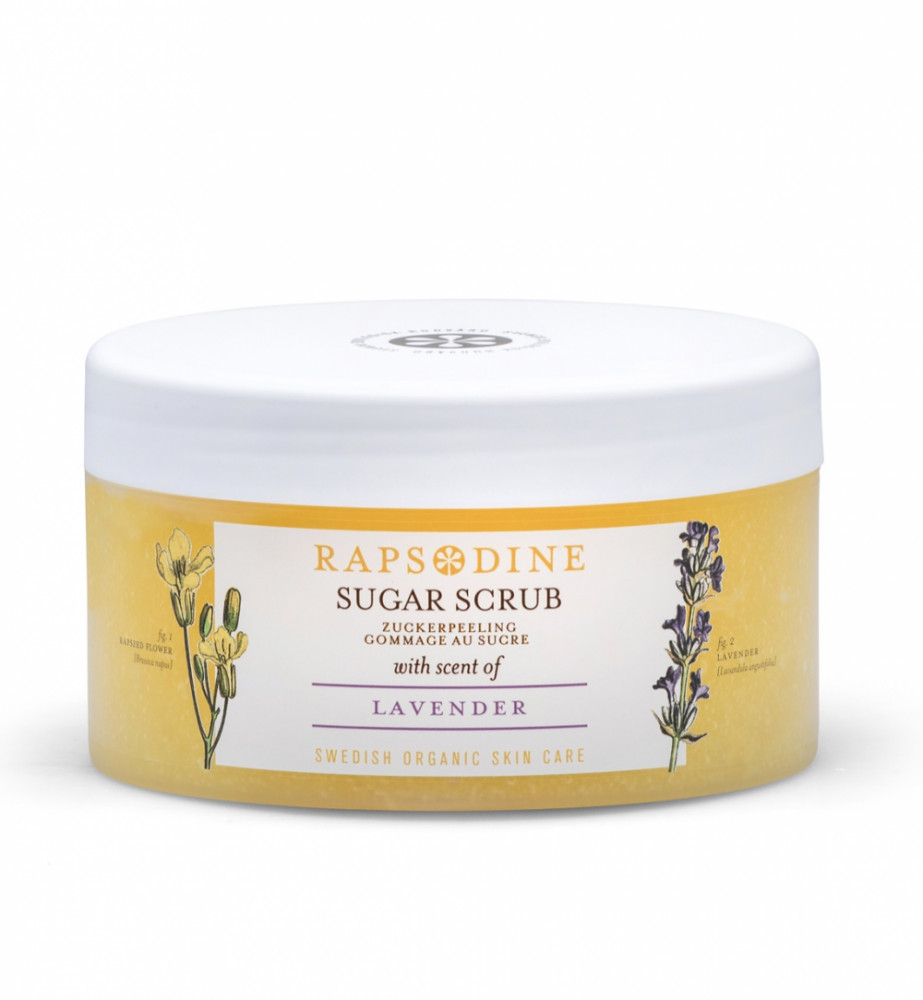 En mildt eksfolierende og fugtgivende bodyscrub beriget med naturlige æteriske olier. Baseret på økologisk rapsolie og rå rørsukker, der eksfolierer huden på en naturlig og skånsom måde. Peelingen er nem at skylle af, da sukkeret opløses af det varme vand. Kan anvendes på krop, fødder og ansigt.