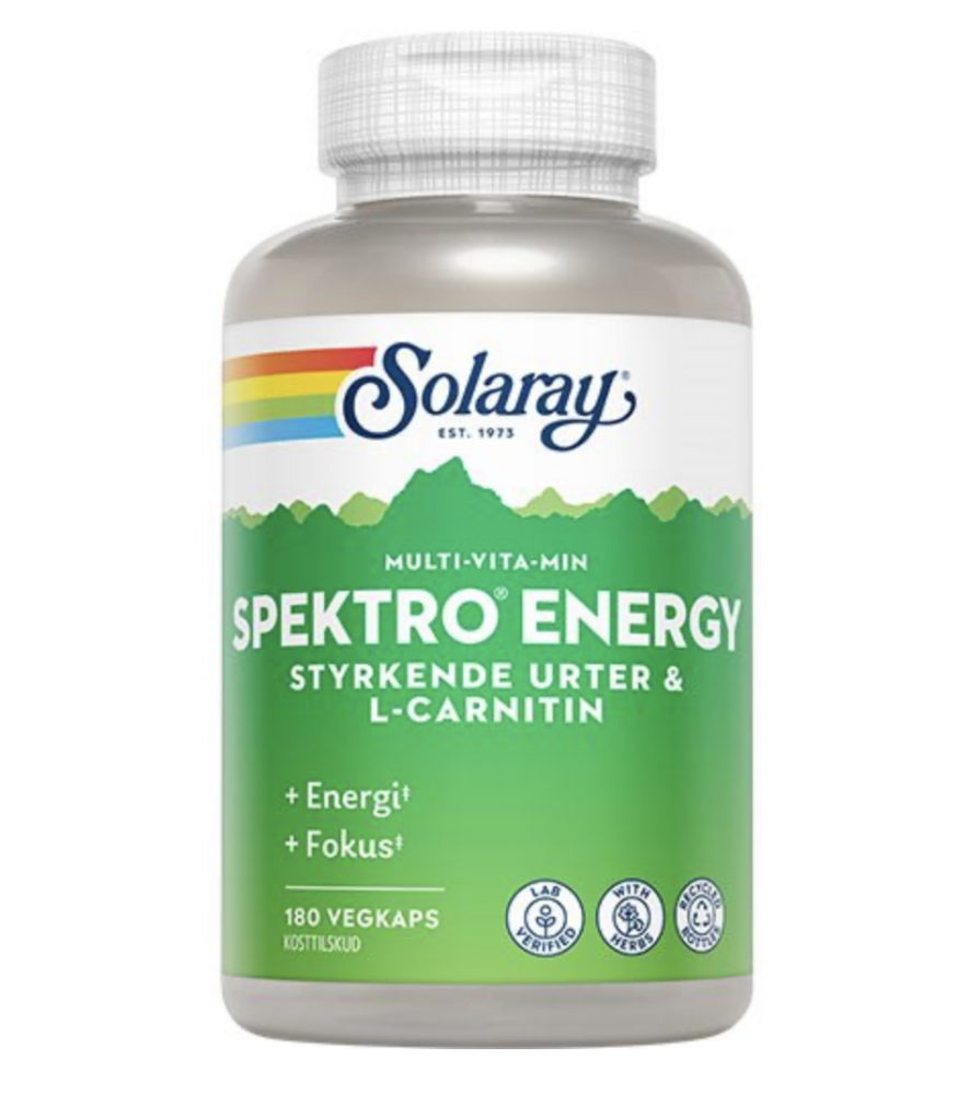 Spektro Energy fra Solaray. Multi-Vita-Min - en kombination af 4 urter, L-Carnitin, vitaminer og mineraler.
