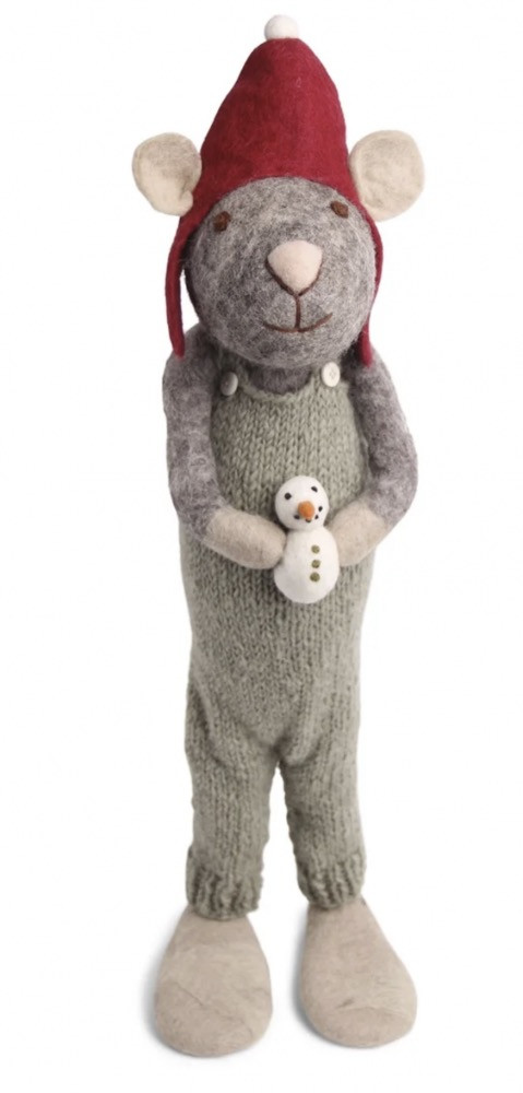 Denne skønne julemus er en dekorativ figur på hele 60 cm, som med sit venlige udtryk og fine detaljer bliver et stemningsfuldt indslag i juleindretningen. Musen er iført en klassisk rød nissehue og en blød, strikket dragt og holder en lille snemand i hænderne – en detalje, der understreger den hyggelige og nostalgiske julestemning.